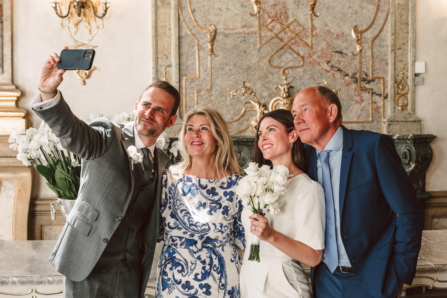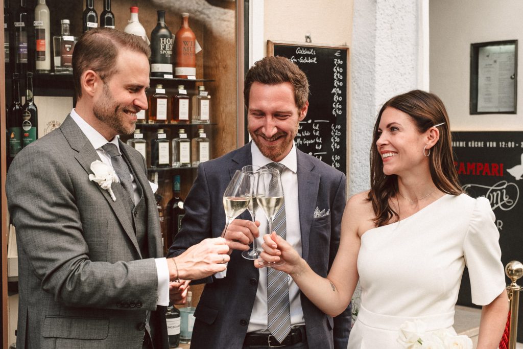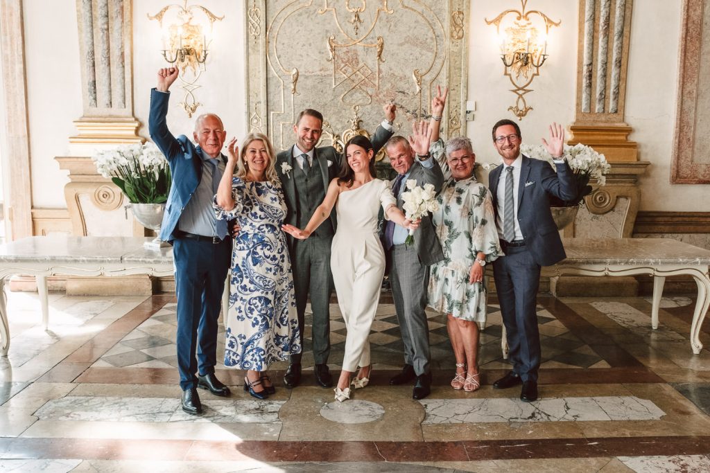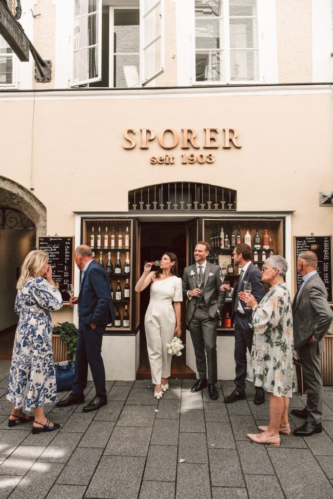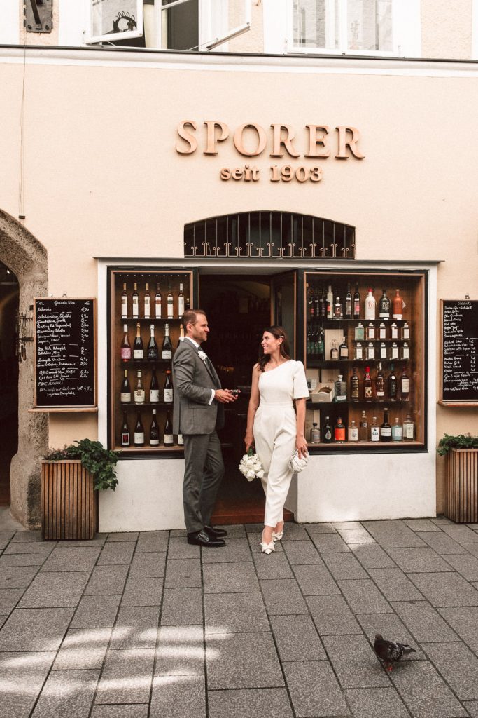 Jennifer & Florian gaben sich im wunderschönen Schloss Mirabell das JA-Wort. Es war nur die enge Familie anwesend und die Standesbeamtin gestaltete die Zeremonie sehr harmonisch. Anschließend spazierten wir mit dem Brautpaar vom Mirabellgarten, über die Salzach in die Altstadt von Salzburg. Dabei entstanden super authentische Fotos und wir hatten echt viel Spaß. Unser Ziel war der Sporer wo die Familie auf die beiden mit einer Flasche Sekt warteten und sie dann den schönen Tag in Salzburg gemeinsam ausklicken ließen.